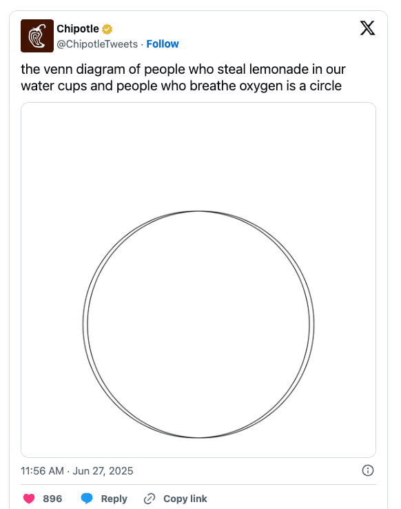 So, I’m still on the fence of whether this recent post by Chipotle counts as an “Intellectual Headshot”, but I’m definitely filing this under “The Power of a Visual” This Headshot delivers on so many levels. It’s funny. Self-deprecating. Relatable. But even more so, it does hit the four hallmarks of a great Intellectual Headshot: Instant — about 2 seconds to consume and get the punchline Memorable — the surprise dissonance of Chipotle sharing a Venn diagram Replicable — so simple, you could see it once and draw it from memory Sticky — try not thinking about this the next time you go to Chipotle (or any other counter-service restaurant) Now, is this one post going to serve as the foundation of Chipotle’s business? No. Will it sell a few more burritos? Perhaps. Does it tell you who Chipotle is? Yes. Sometimes that’s all we’re after, for now. 💡 -Wes P.S. For a full teardown of a recent client's portfolio of Intellectual Headshots, check out the last 15 minutes of my recent appearance on The White Rabbit w/ Matt Krause and Alper Rozanes. And if you want to learn more about building out your Intellectual Headshots together one-on-one, check out The IP Builder Sprint and book a free call. |