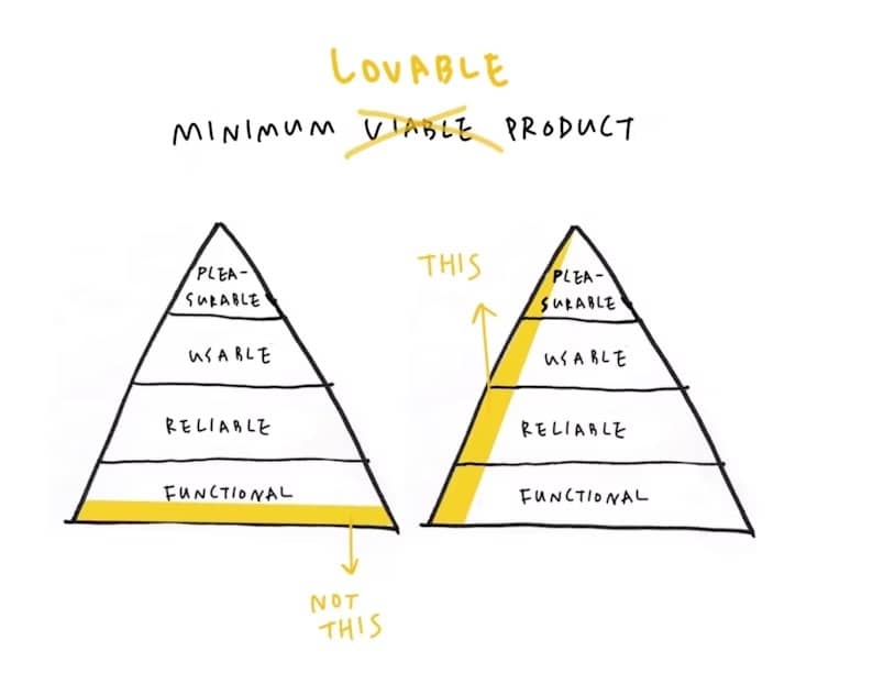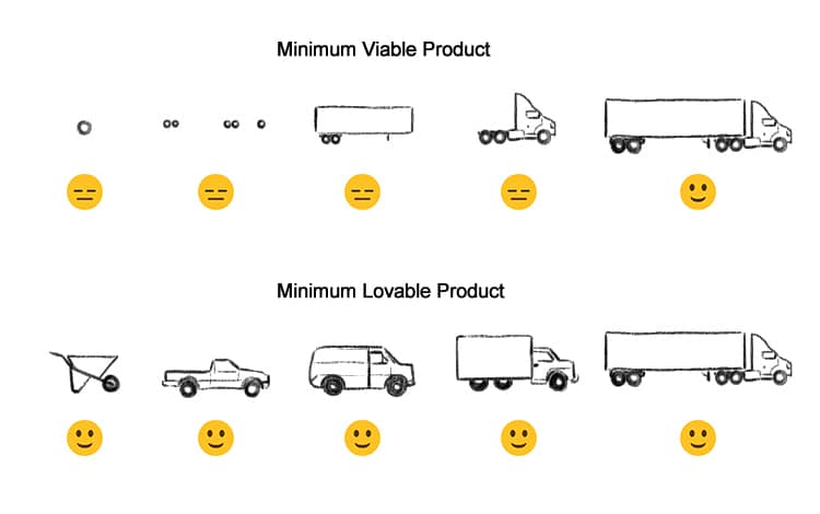 Even if you’re not a product manager, or in tech at all, you may be familiar with the term ‘minimum viable product’ or MVP. In laymen’s terms, it essentially means a barebones prototype of a digital product you can test in the market to see if there’s any traction. The idea of focusing on an MVP was a pretty radical concept even just 15 years ago, challenging the assumption that you needed to have a fully functional and polished product before any sort of public release. Instead, build and release an MVP, and iterate from there if it showed promise, sparing your teams costly throwaway work if it was a dud. As with everything, product development methodologies have evolved further, shifting focus to an MLP - minimum lovable product as the first crack. The difference between MVP and MLP? Even less functionality, but with enough usability, polish and delight that your users get excited about adopting and evangelizing it on your behalf. Or, instead of the 100 words I just force-fed to you about this topic, this “Intellectual Headshot” describes MVP and MLP quite well (via Adam Fard Studio): In fact, this “Headshot” is so good, it’s been recreated and republished extensively, so much so that I couldn’t trace the original owner of it. Even so, this side-by-side pyramid framework may still struggle to convey the message to non-technical audiences. It relies on quite a bit of text, each layer of the pyramid potentially requiring its own voice-over. So here’s another take, using a visual metaphor of a cup of coffee (via Agilie): Interesting, but almost too reductive. “We’re just supposed to make it pretty?” Here’s another, using an ice cream cone and even a mid-step called MMP (via Upsilon) This is getting really close to memorable, executive-friendly visual distillation. But many would argue it’s misleading to suggest that MLP simply means adding "flair" to an MVP. Enter my favorite, using the metaphor of hauling (via Aaruni): I think this one is the best balance of simplicity and nuance, making explicit that an MVP is actually more complex than an MLP. In this example, an MVP of an 18-wheeler may be a stripped down version of an 18-wheeler, but you still have to build a functional 18-wheeler. Instead, an MLP is actually the simplest usable product that can do a stripped down version of the job. Aka, a wheelbarrow. Now, apologies if I’ve lost you - this is a very cursory explanation of topics that have been discussed and debated at great depth by proper product SMEs for many years. But my point is this: Imagine trying to explain any of this without a visual metaphor like the trucks, the coffee, or the ice cream cones. Or without a framework like the stacked pyramids. Or without any visuals at all. That’s the risk we run trying to verbally explain our expertise in the market. Cue the confusion. Cue the eye-glazing. Cue the cerebral chaos. Visuals are the generous life preserver you offer to those who will never understand your domain at the depth that you do. To get them from A-to-B mentally, without drowning. And they make your job a hell of a lot easier too, if you just take the time to create them. 💡 -Wes P.S. Still getting tongue-tied trying to explain your unique point of view? Could a few clutch, signature visuals help you approach presentations and sales conversations more confidently? My 1:1 "Intellectual Headshots" sprints are now open for February. Details, dates and pricing here. And schedule a free, no-obligation fit check to see if it's the right fit for you. |