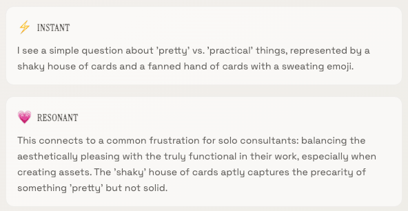 All told, this is all fair feedback, even if I think IRIS is undervaluing the clever āa-haā of the right frame. But this also is exactly what I needed to hear on this one ā essentially ānice visual, bro - but does it actually do anything?" If not, why are we even doing this? Now itās up to me to go a tad deeper to get this one over the line.... Want to try this out with your own visuals? The free IRIS beta is open now. š” -Wes |
